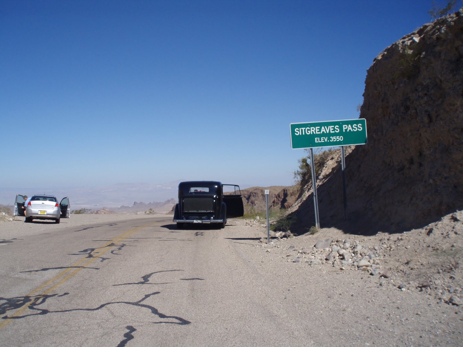 I kept it in second gear most of the time, sometimes going to third on the flat or even short downhill sections on the way up. The water temperature was good, but then we started hitting the switchbacks which forced us to drop to about 5-10 mph on the hairpins, so the low RPMs and heavy work caused the temperature to rise. I thought about trying to get all the way to the top without stopping, but the temperature was at 93C so we stopped at 13,000 feet and milepost 16 (Devil's Playground). The water was boiling but hadn't purged any out, so I opened the cap and let the pressure vent off and we waited 30-40 minutes for the water temperature to cool to 84C. From there we made it up to the top with no further issues. Our final accomplishment before coming home.